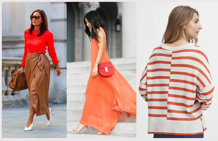اگر نمیخواهید استایلتان خیلی جسورانه و پررنگ شود، بهترین راه ترکیب قرمز یا نارنجی با رنگهای خنثی است.