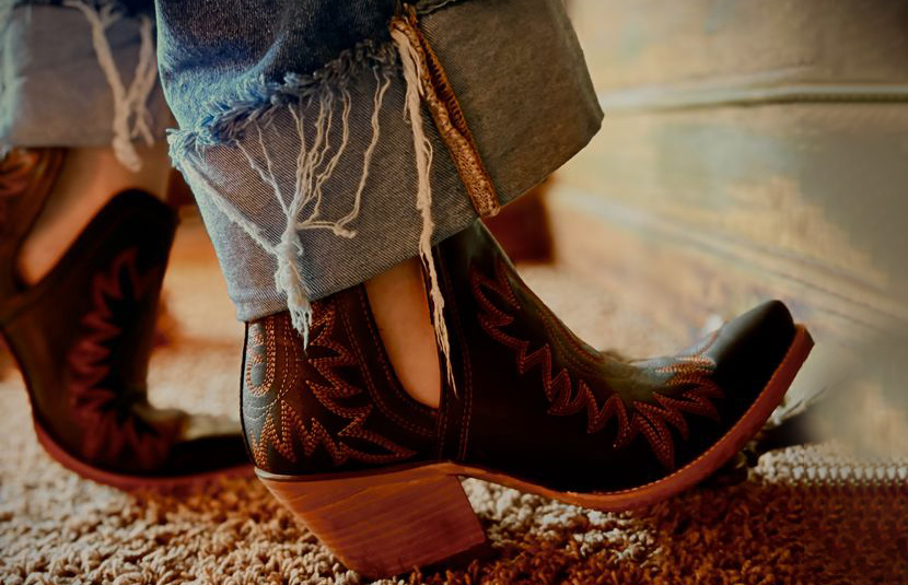 خانمها معمولاً از بوتهای کابویی کوتاه، شلوار یا دامن جین، کمربندهای چرمی و اکسسوریهای نقرهای استفاده میکنن.